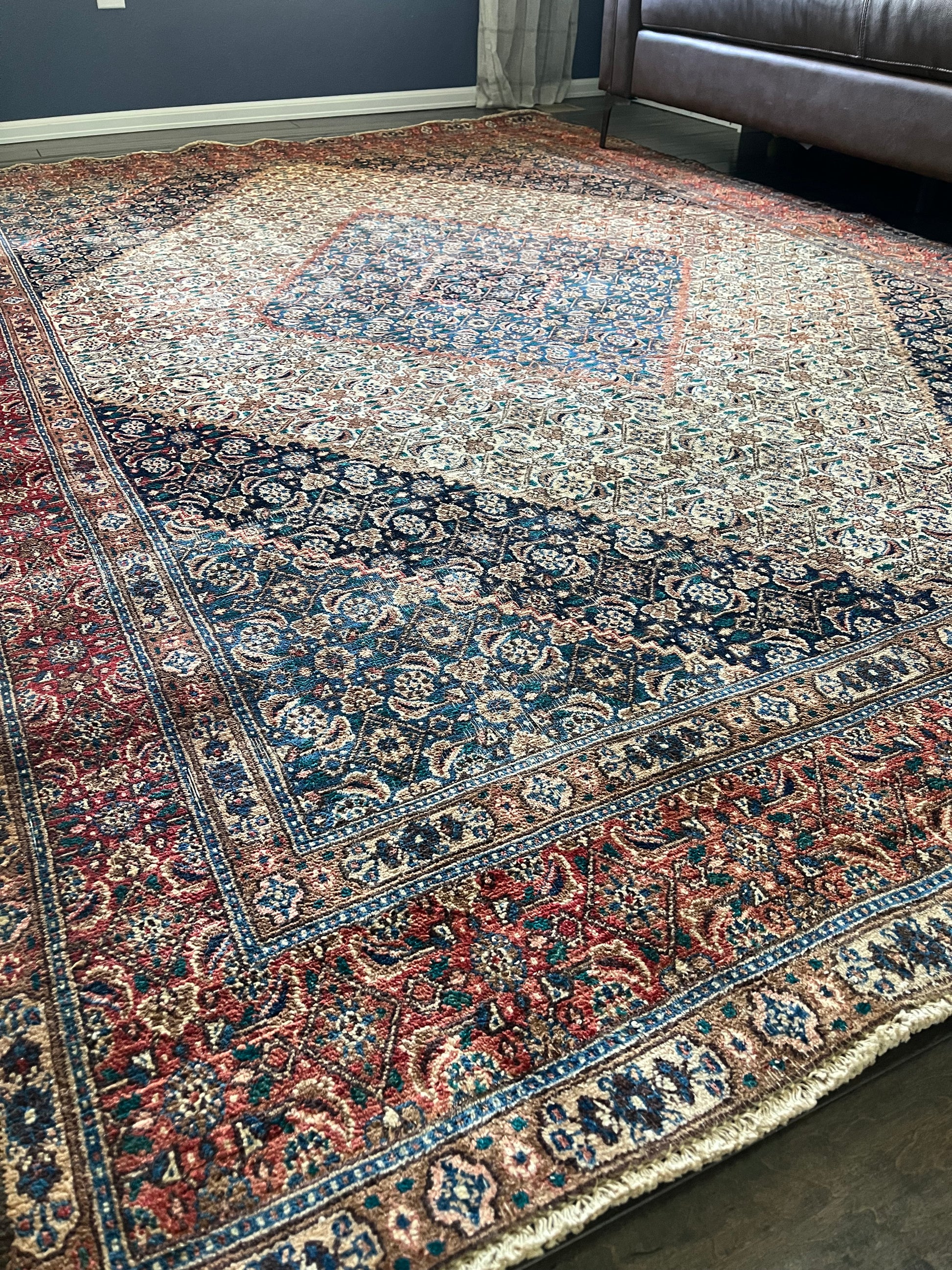 This vintage wool rug is a true masterpiece, with a mesmerizing diamond medallion design that fades seamlessly from deep navy to soft ivory, like a perfectly aged work of art. Its intricate floral patterns and warm, earthy tones create a luxurious yet inviting feel, making any room instantly more elegant. Whether you’re a collector or just love a touch of old-world charm, this rug is ready to add timeless sophistication to your space!
