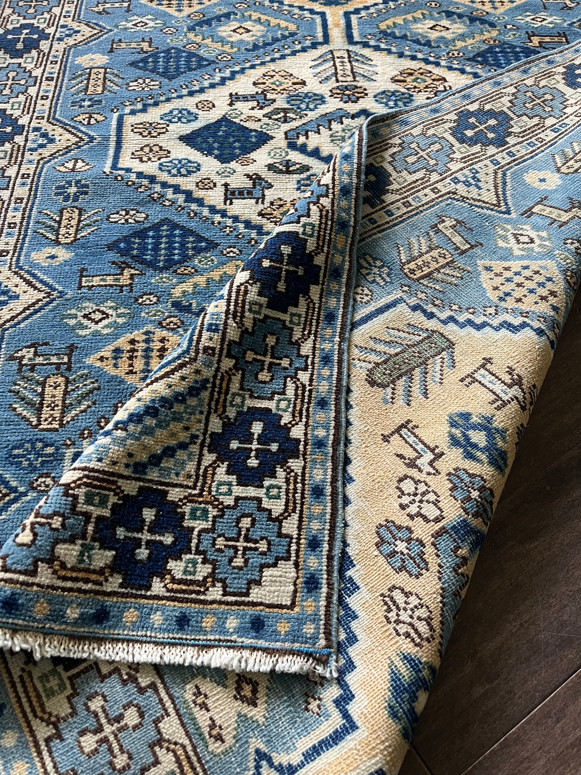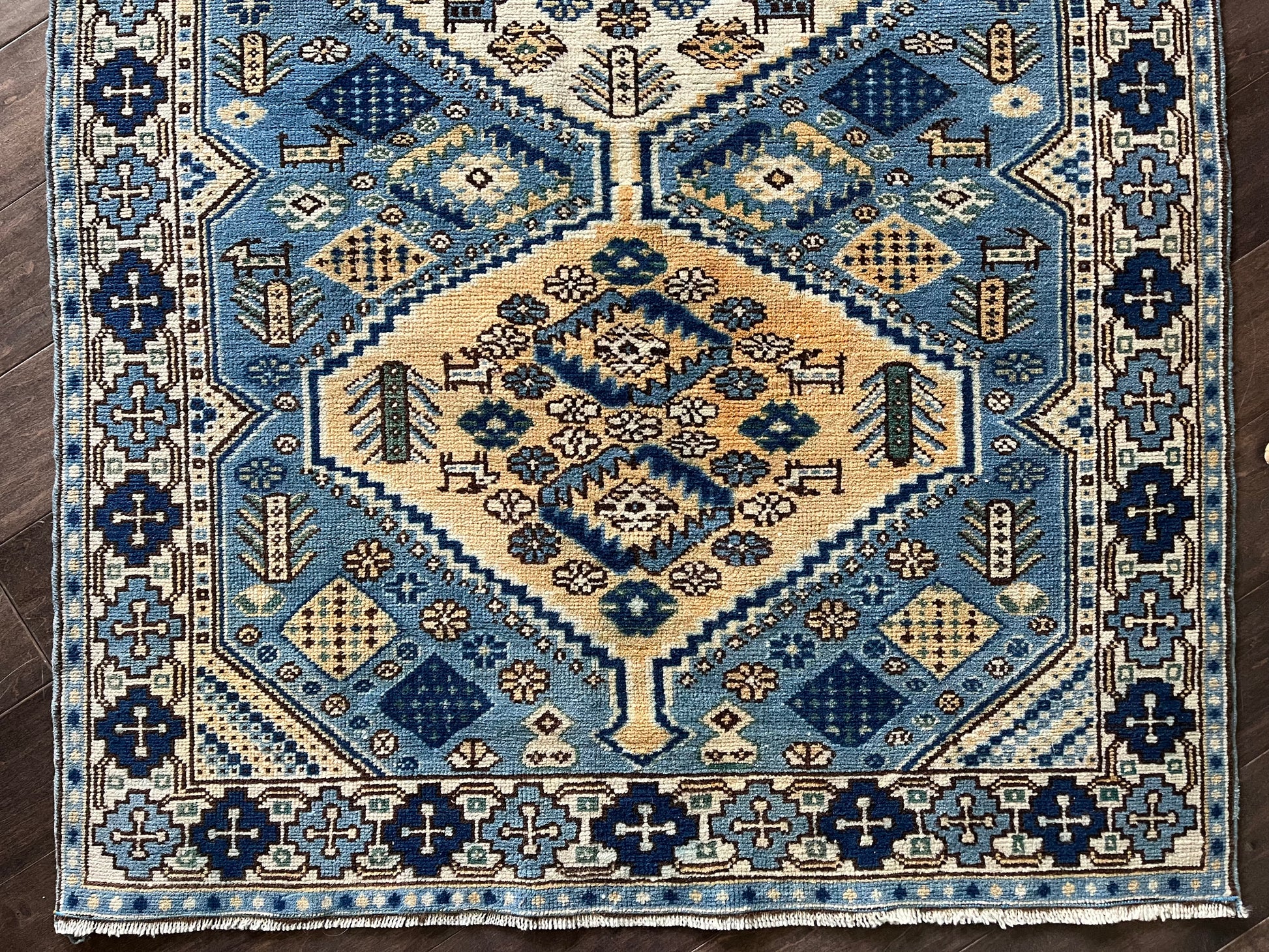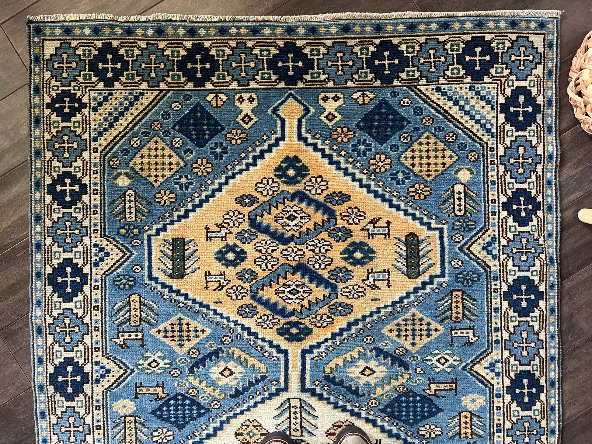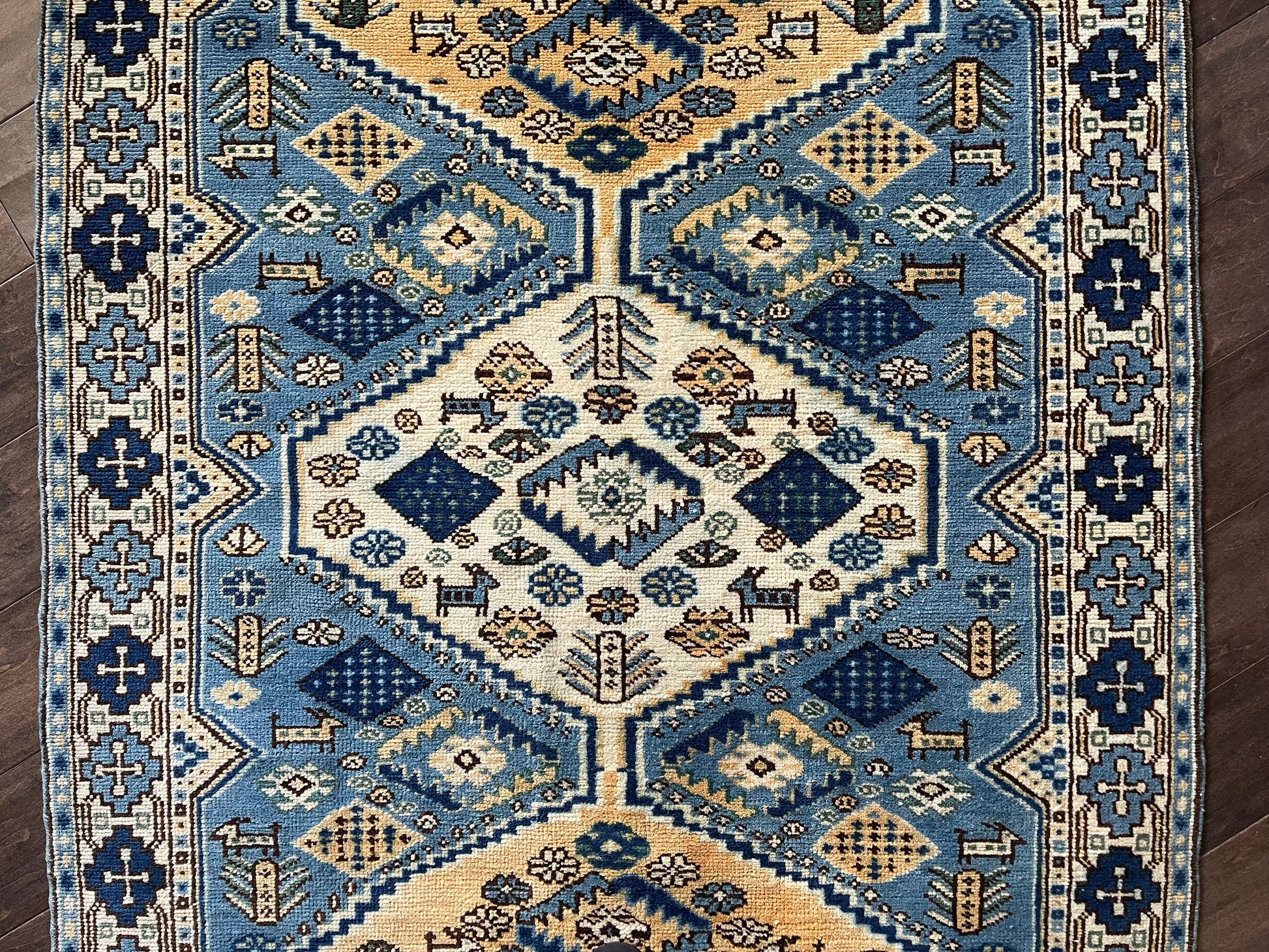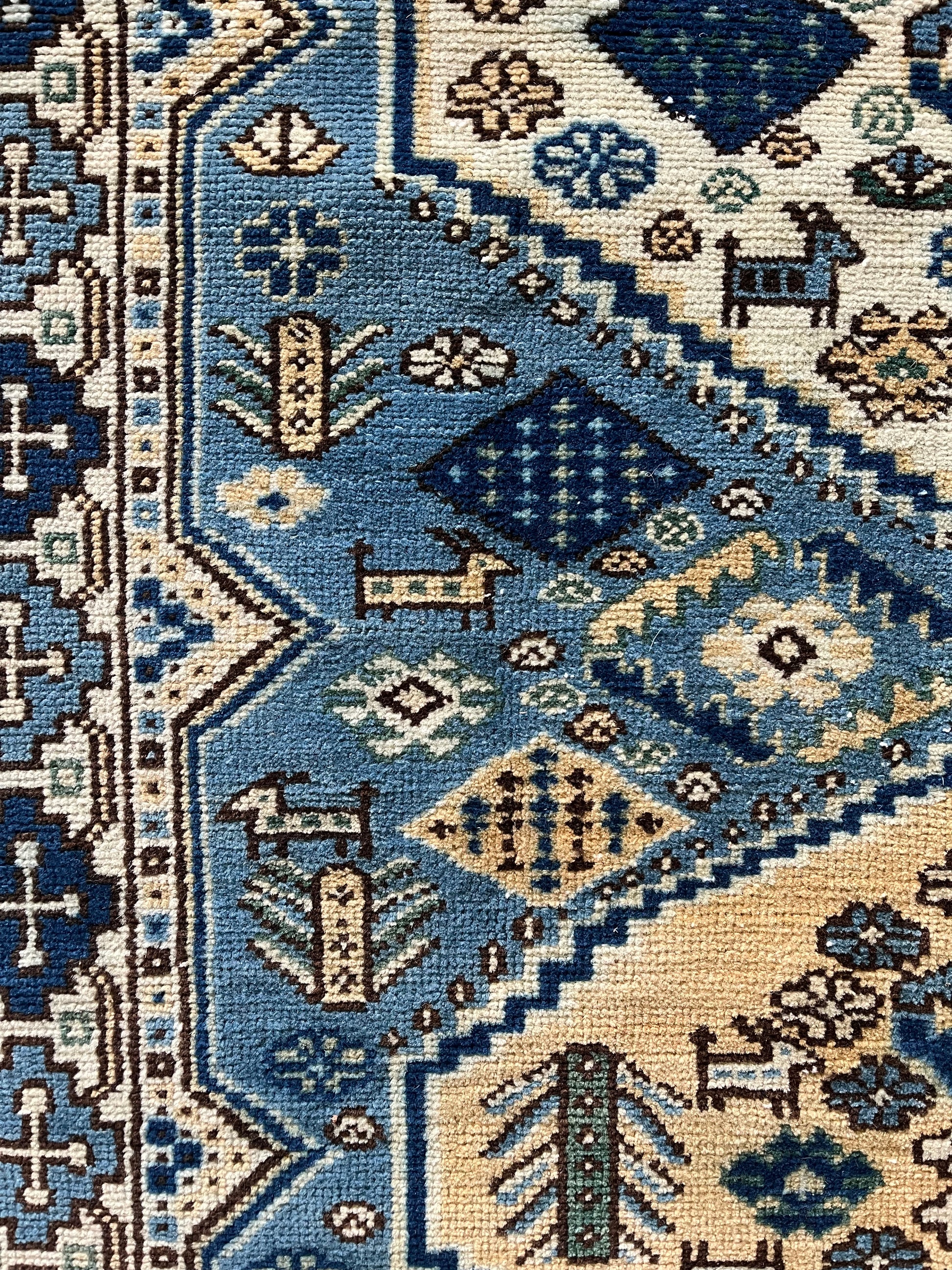 This rug makes me so happy when I look at it. From the adorable animals to the abundance of flowers - what's not to love?! Blue is a tough color to find in vintage rugs - if you're after a mainly blue vintage baby, this one is calling your name!