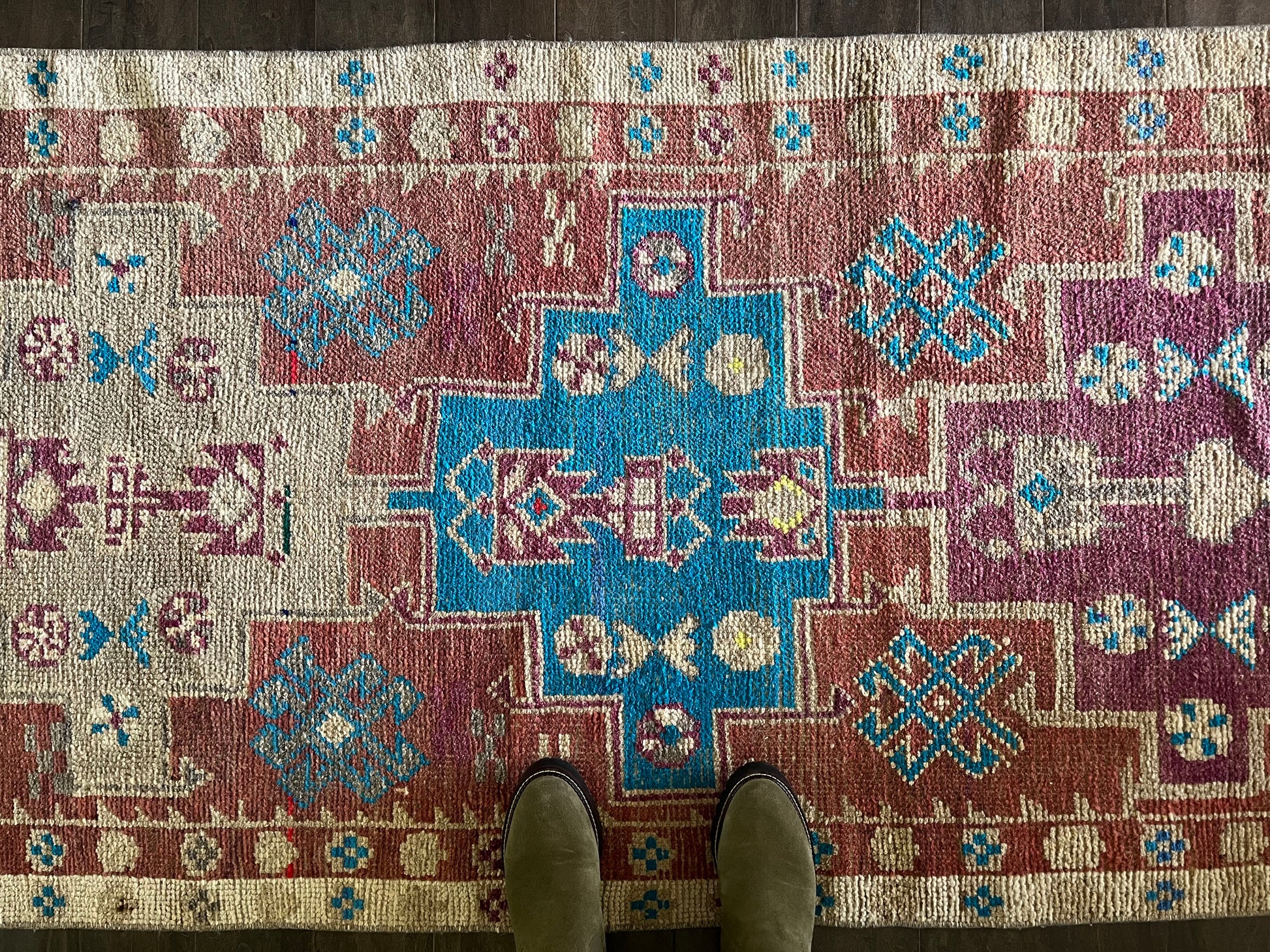 Note: Handwoven vintage rugs are all one-of-a-kind. Each will have imperfections due to their vintage nature, but that's what makes them so special & unique. If you have any questions on a rug, please reach out to me prior to purchasing - all sales final.