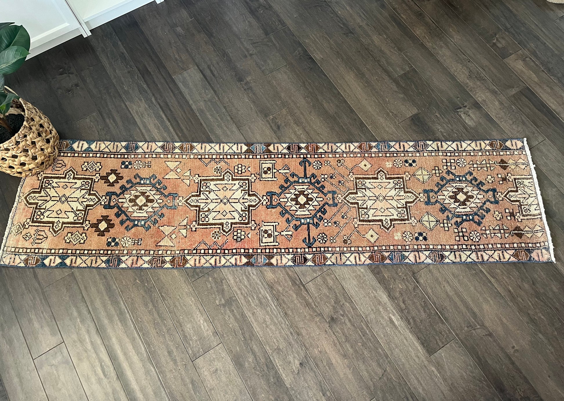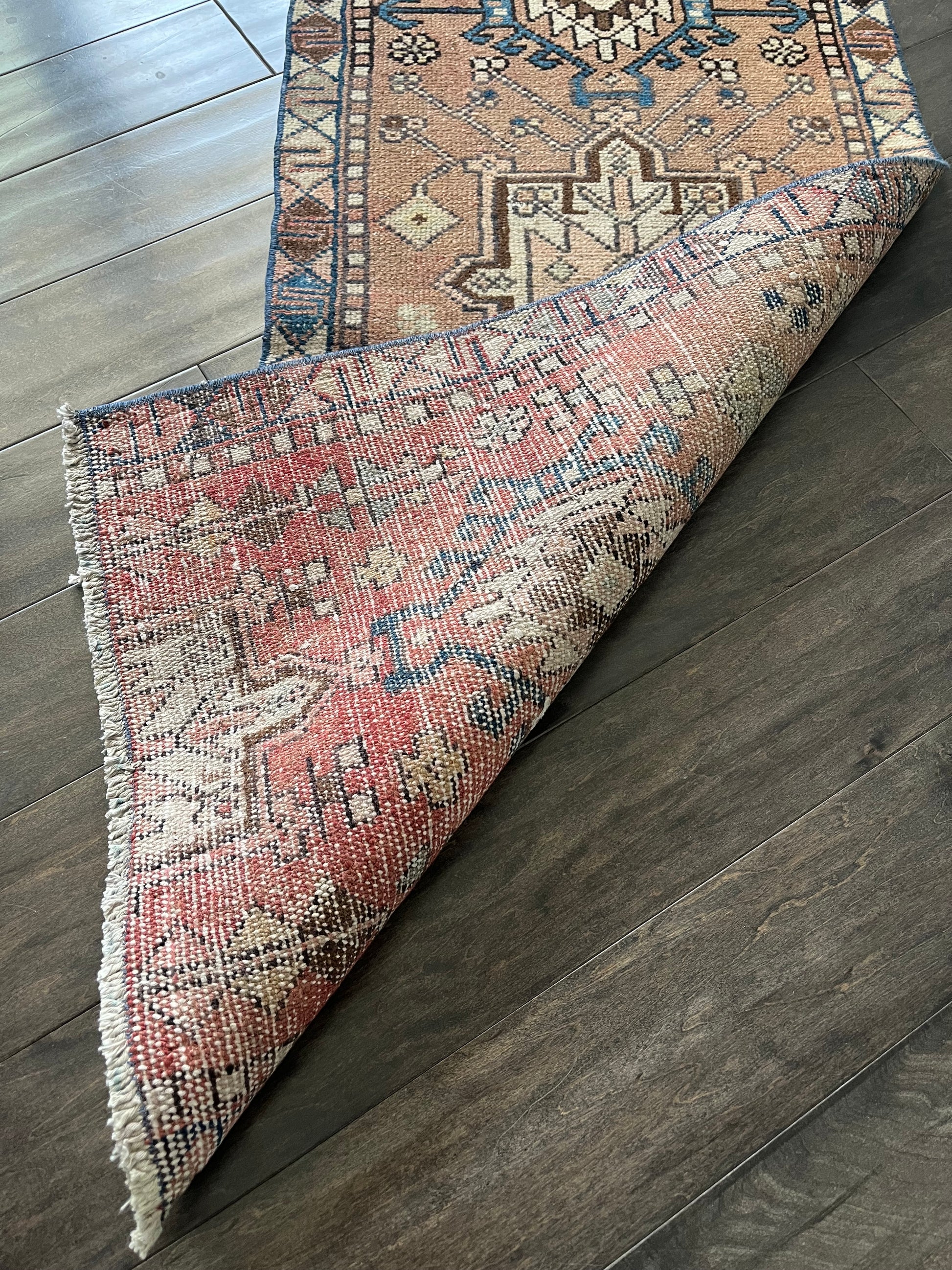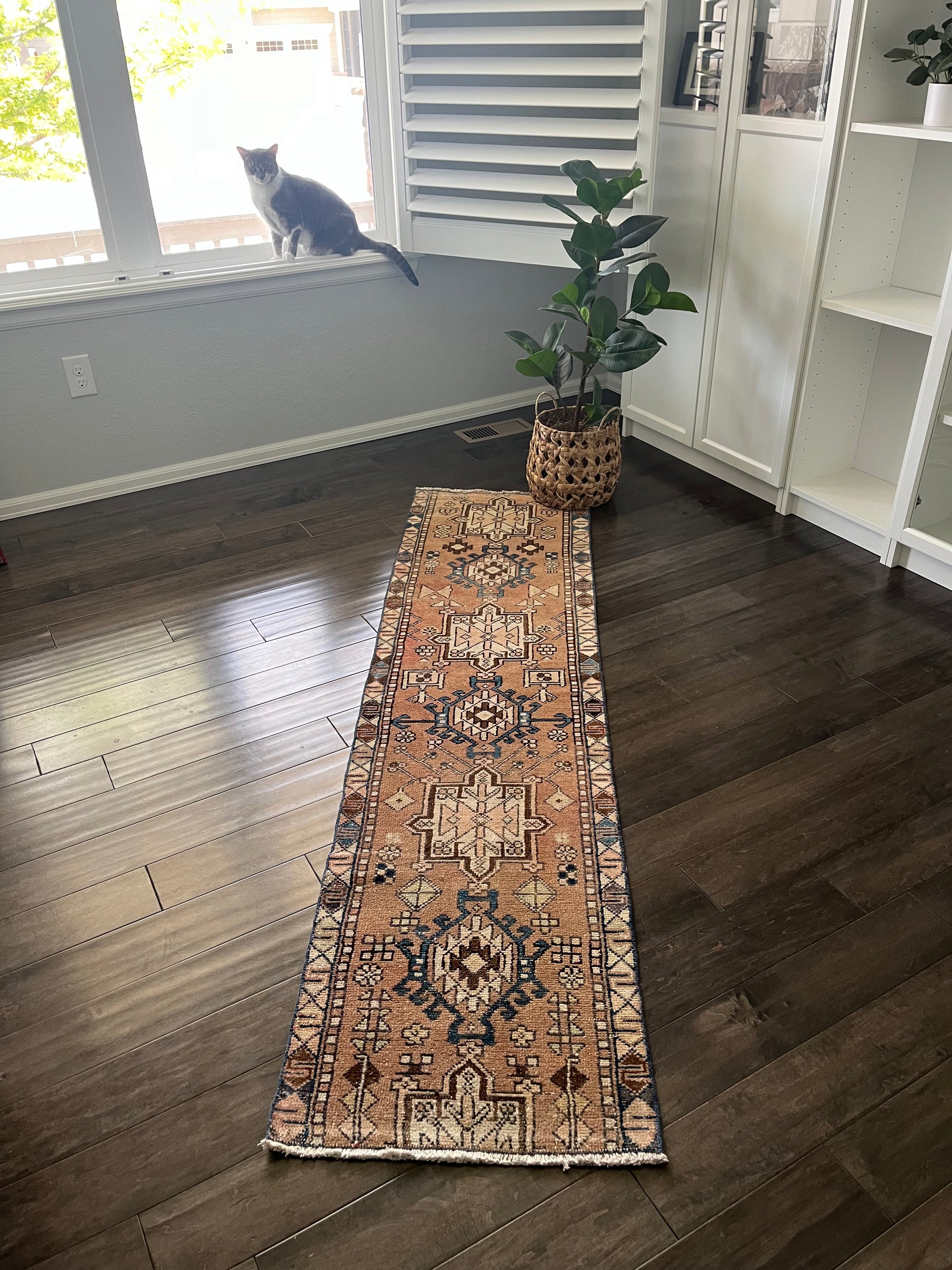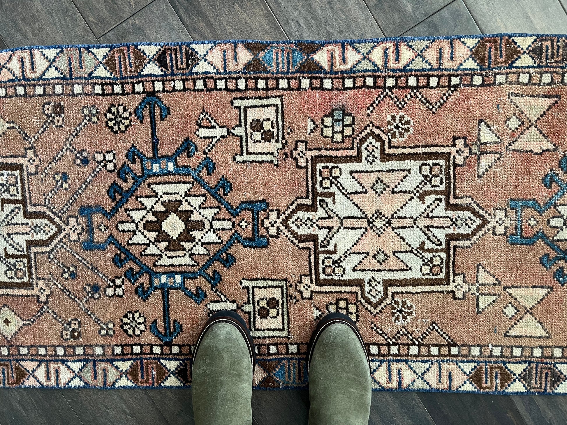 This runner is so effortlessly cool. Hints of blue always have my heart and this one is no different! Smaller runners like this are hard to come by. I think she'd look amazing in a kitchen, small hallway, or even in a bathroom with double sinks!