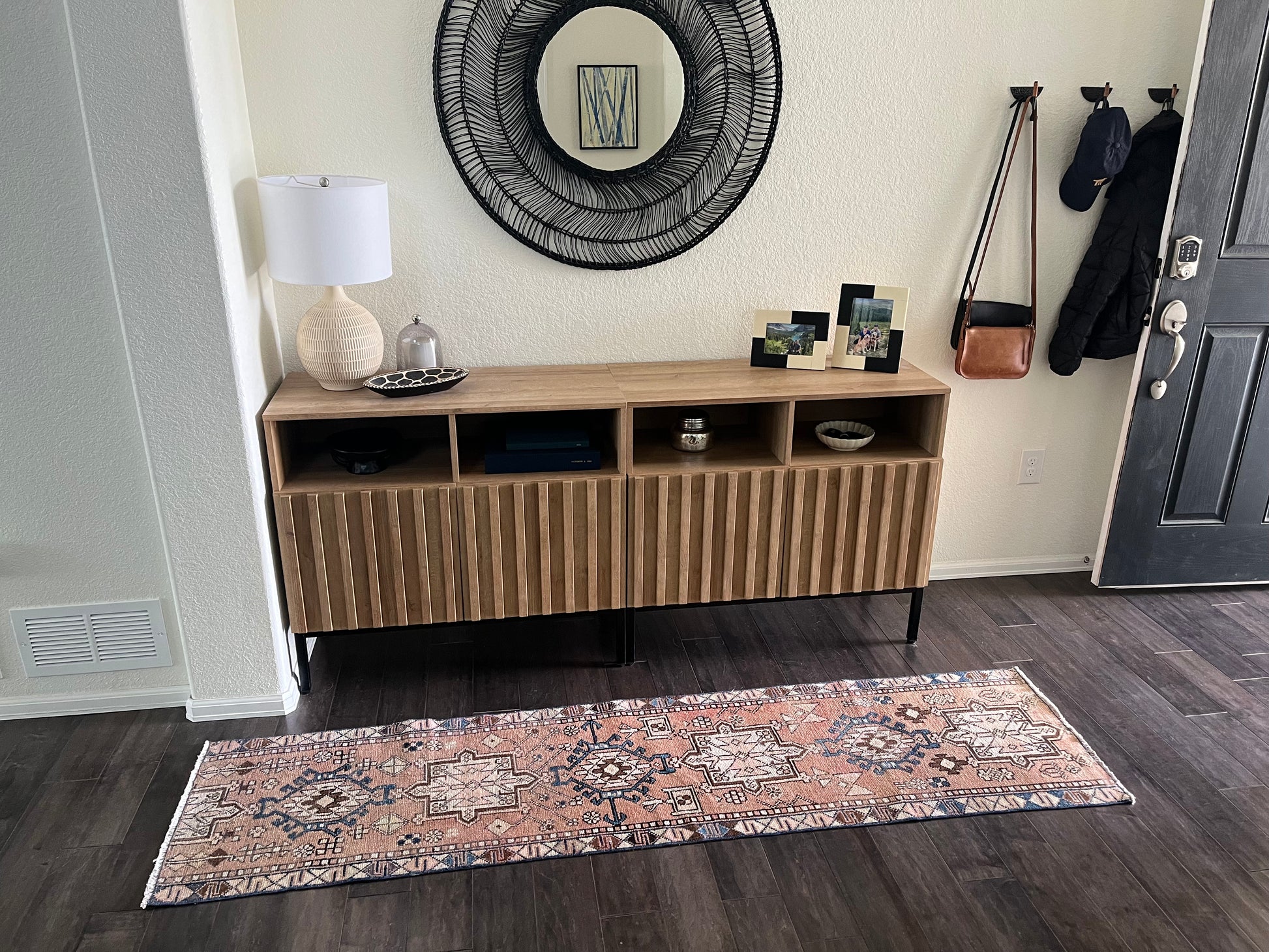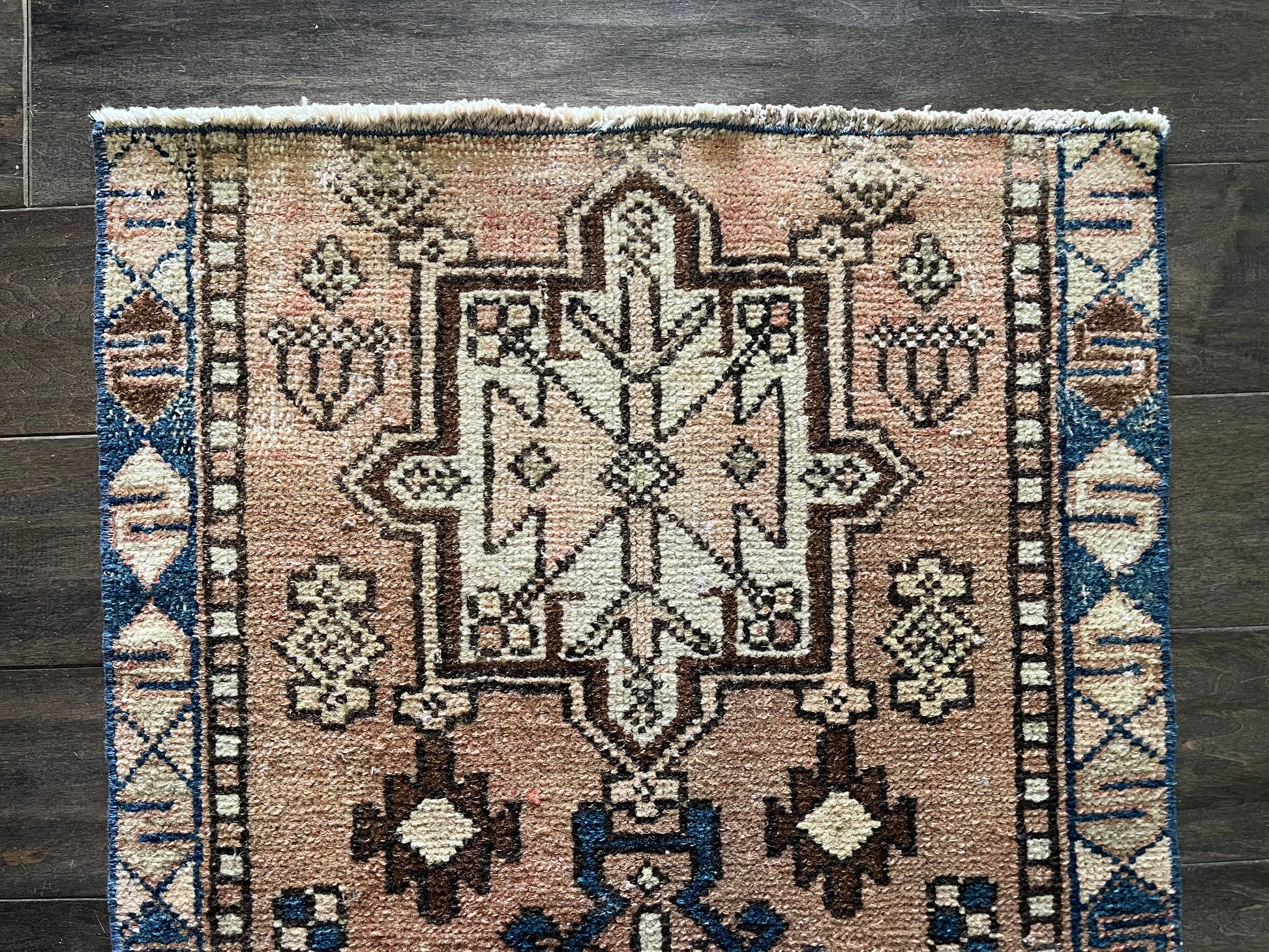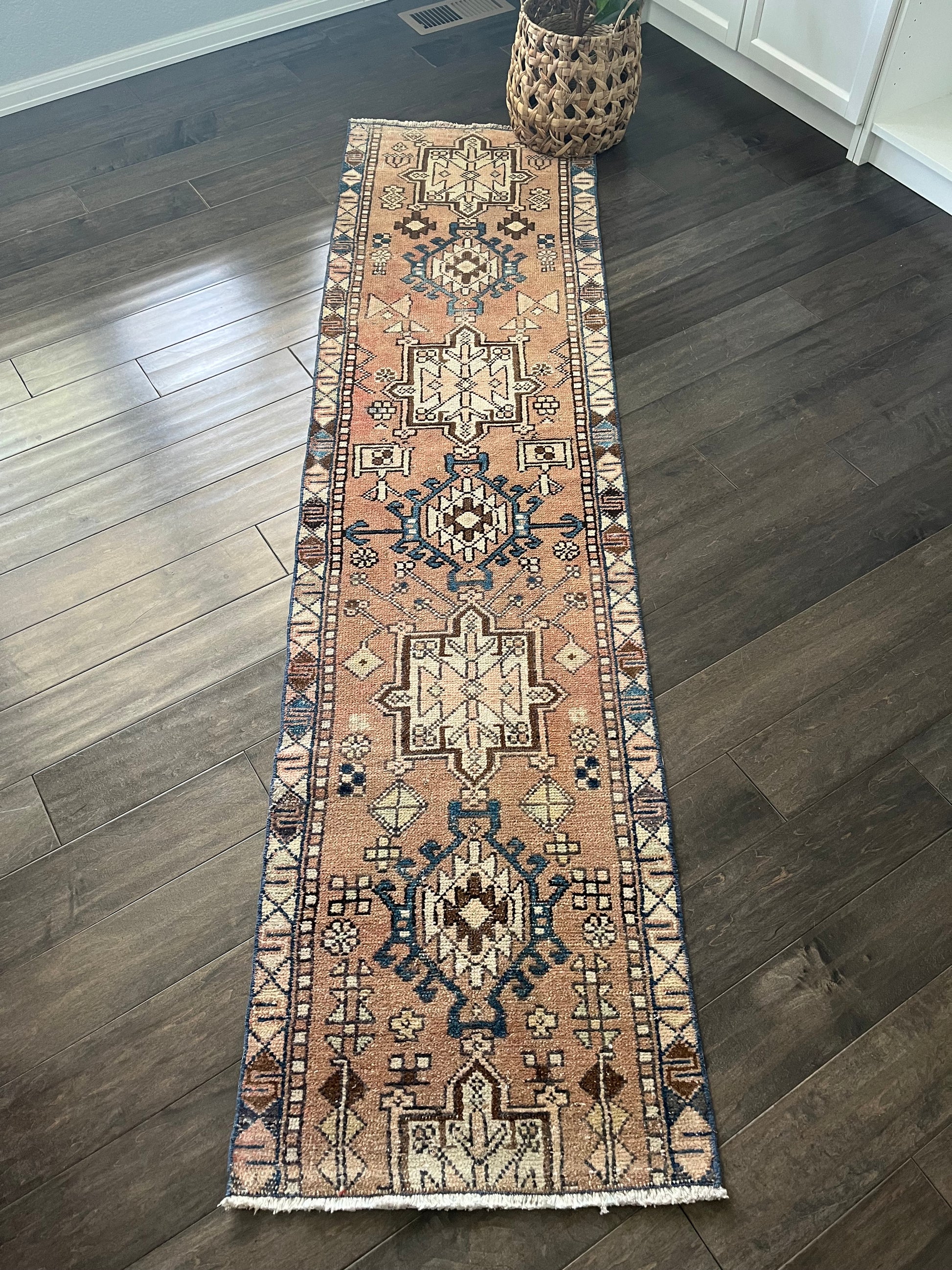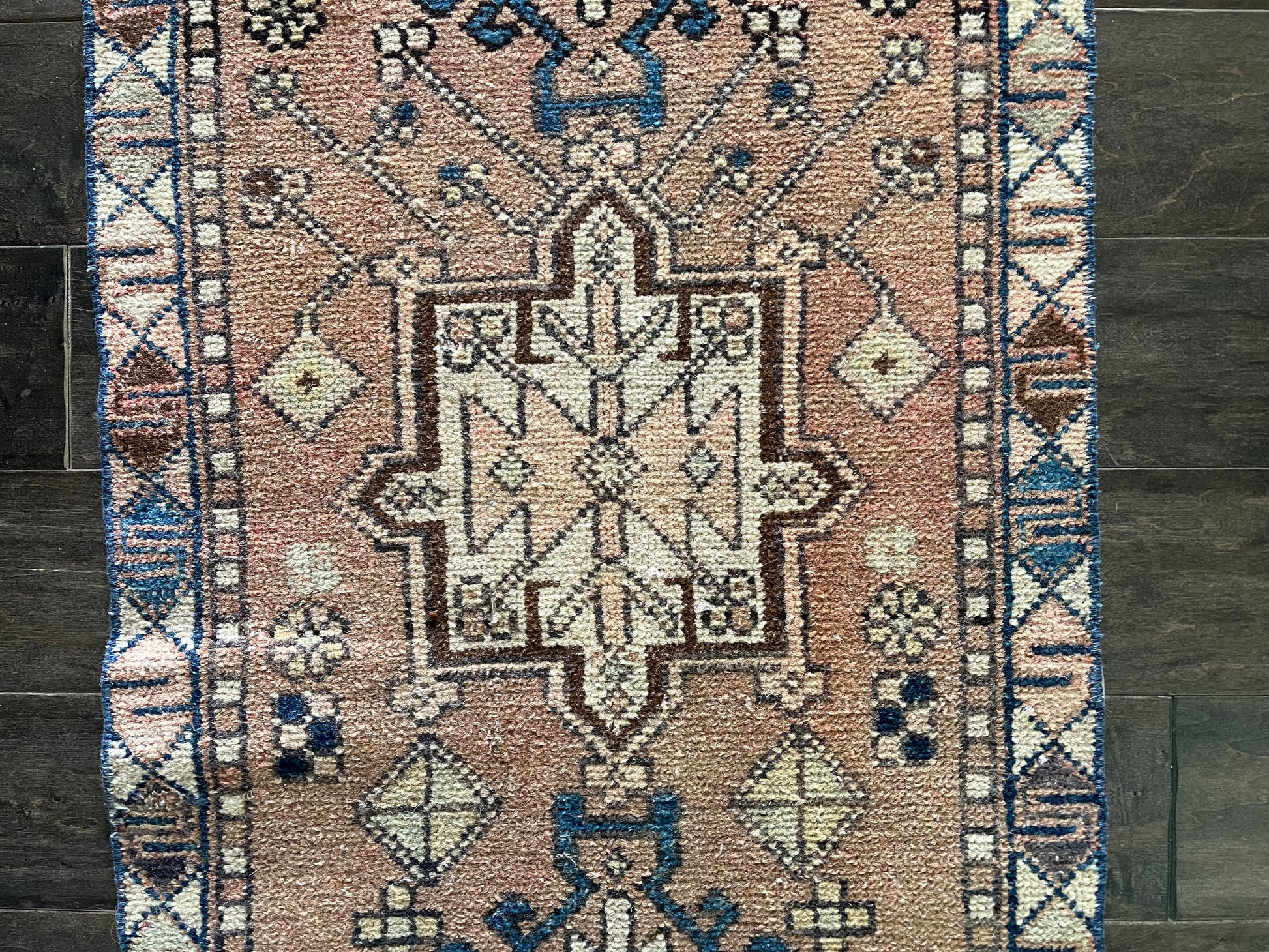 This runner is so effortlessly cool. Hints of blue always have my heart and this one is no different! Smaller runners like this are hard to come by. I think she'd look amazing in a kitchen, small hallway, or even in a bathroom with double sinks!