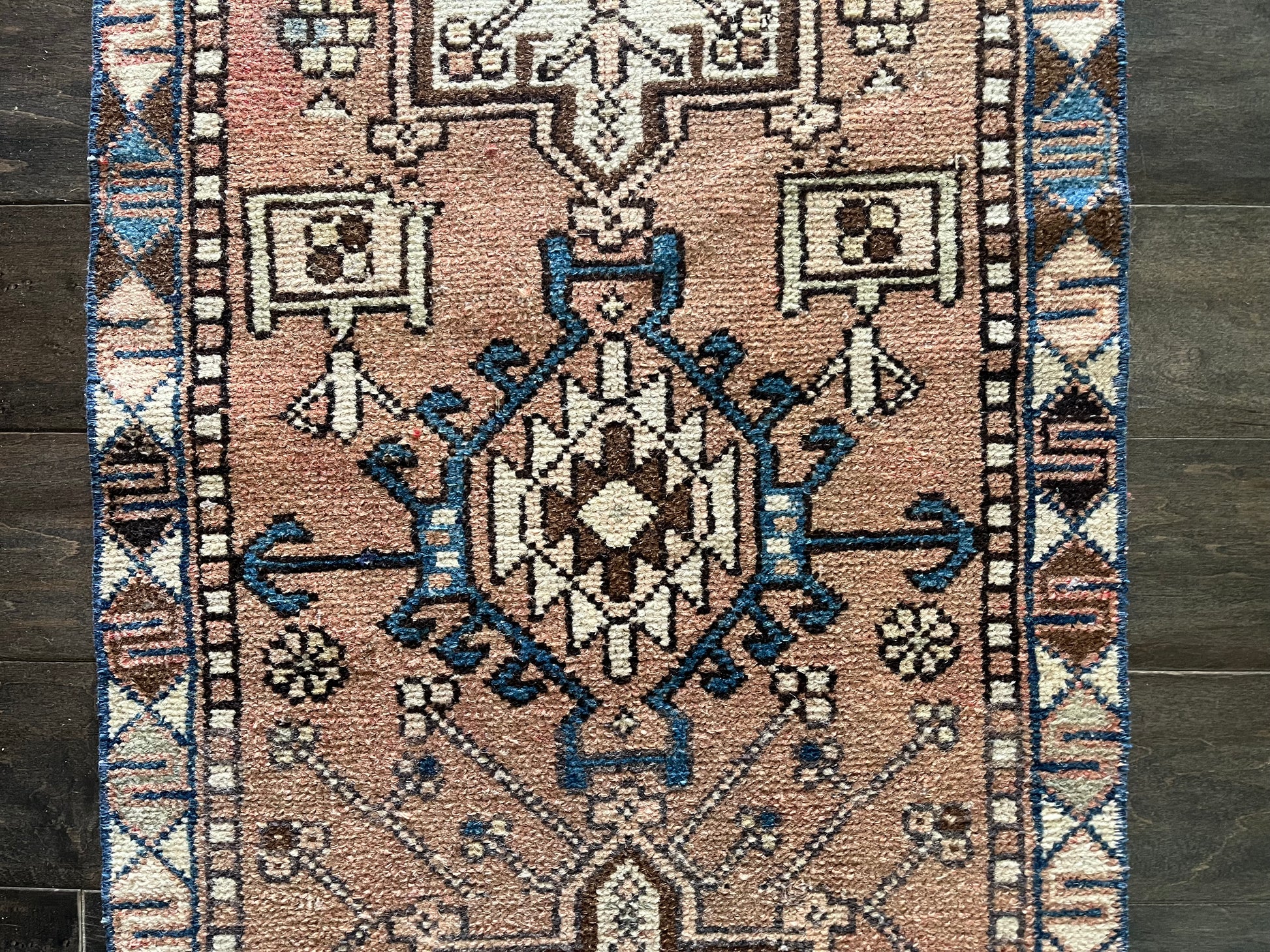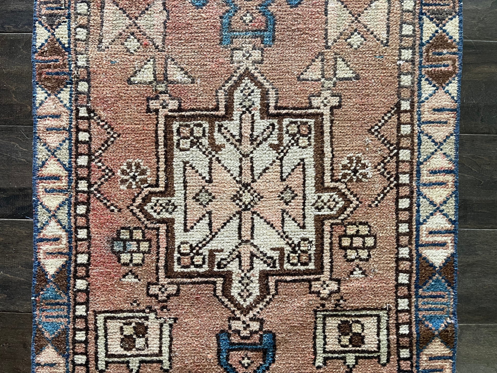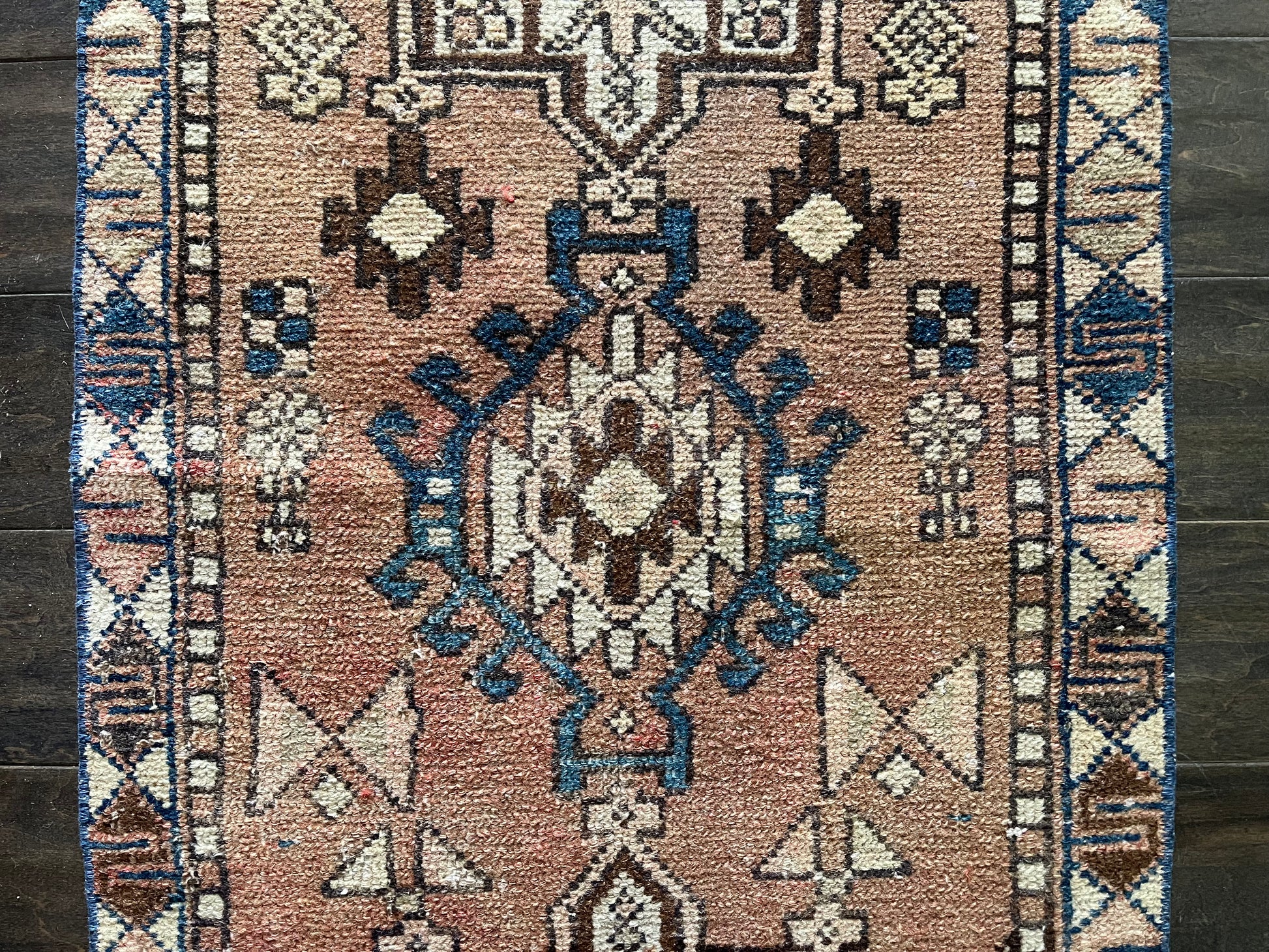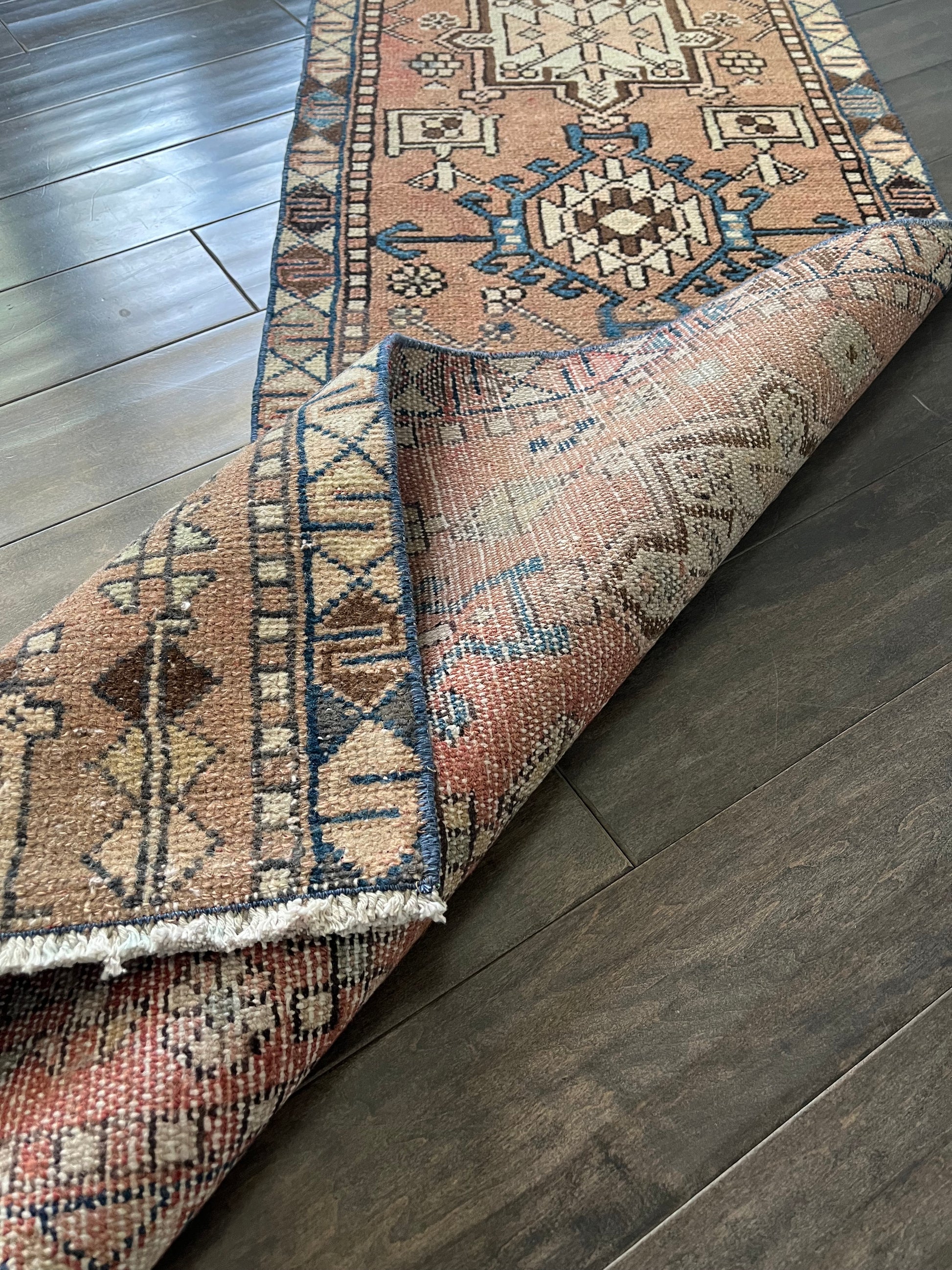 This runner is so effortlessly cool. Hints of blue always have my heart and this one is no different! Smaller runners like this are hard to come by. I think she'd look amazing in a kitchen, small hallway, or even in a bathroom with double sinks!