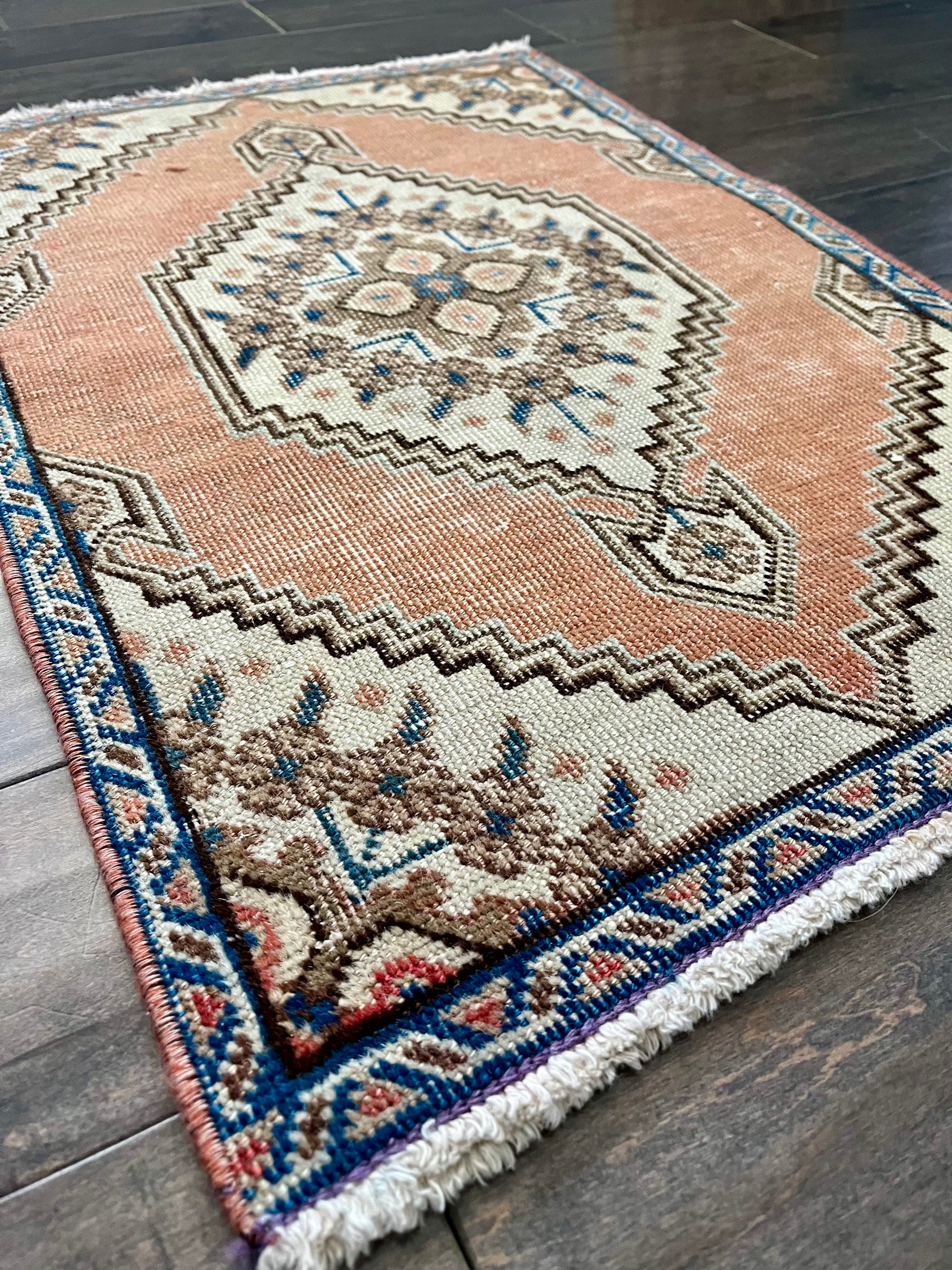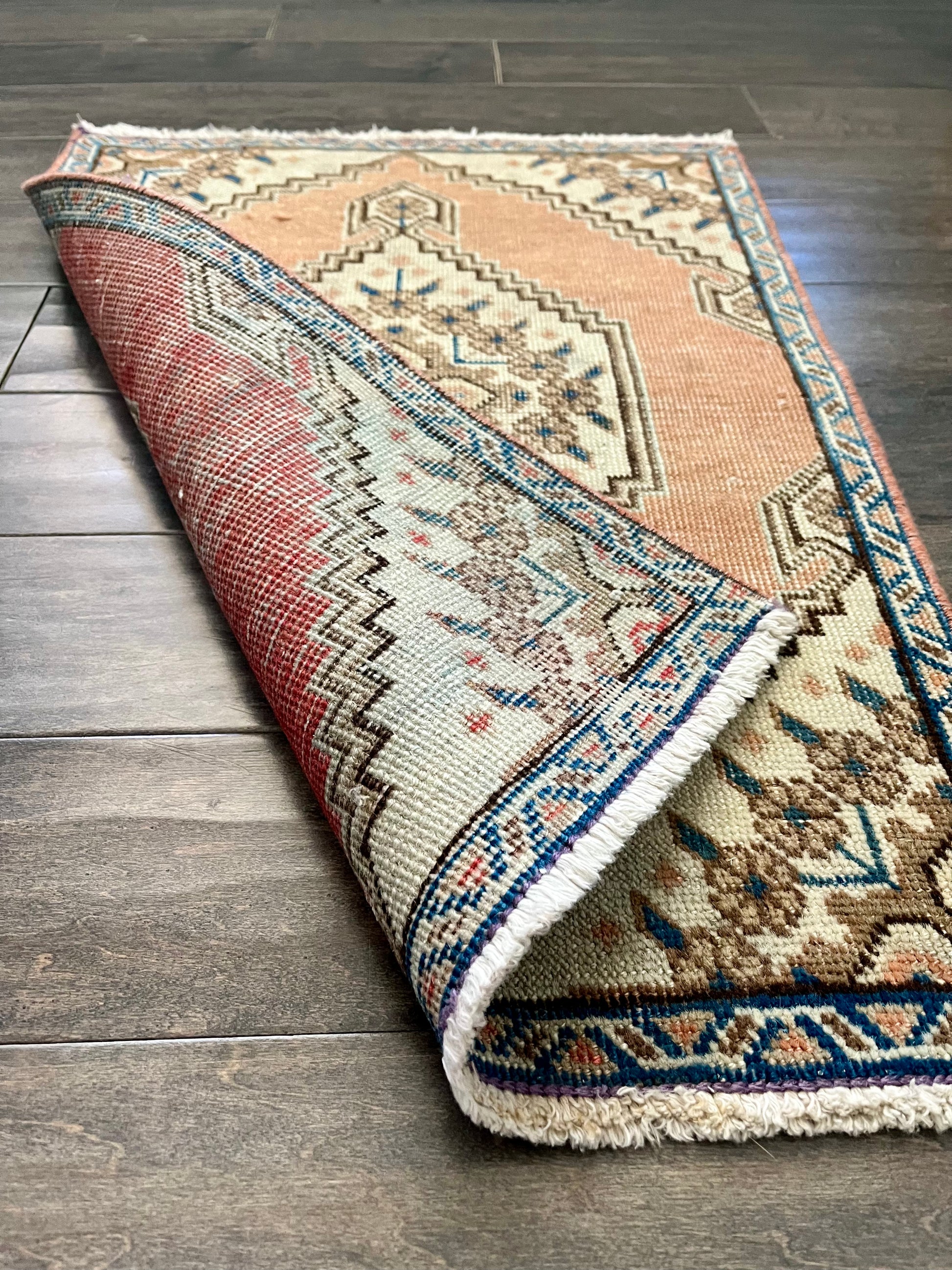 Note: Handwoven vintage rugs are all one-of-a-kind. Each will have imperfections due to their vintage nature, but that's what makes them so special & unique. If you have any questions on a rug, please reach out to me prior to purchasing - all sales final.