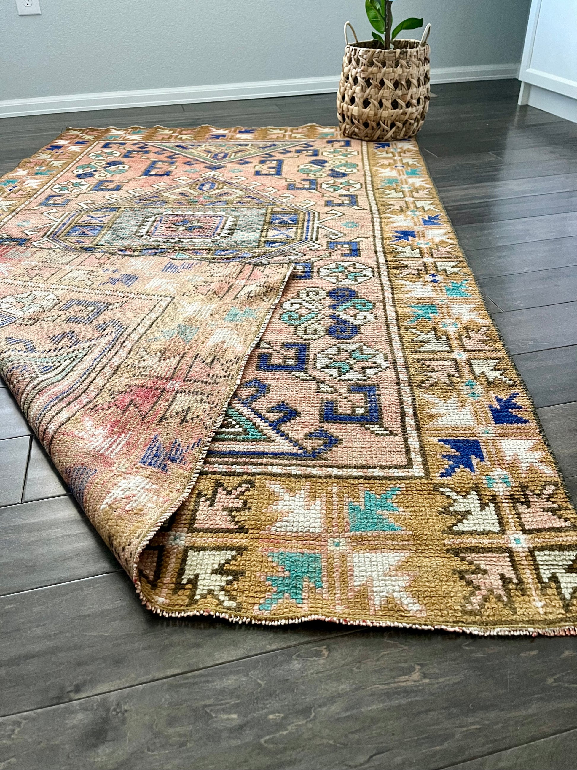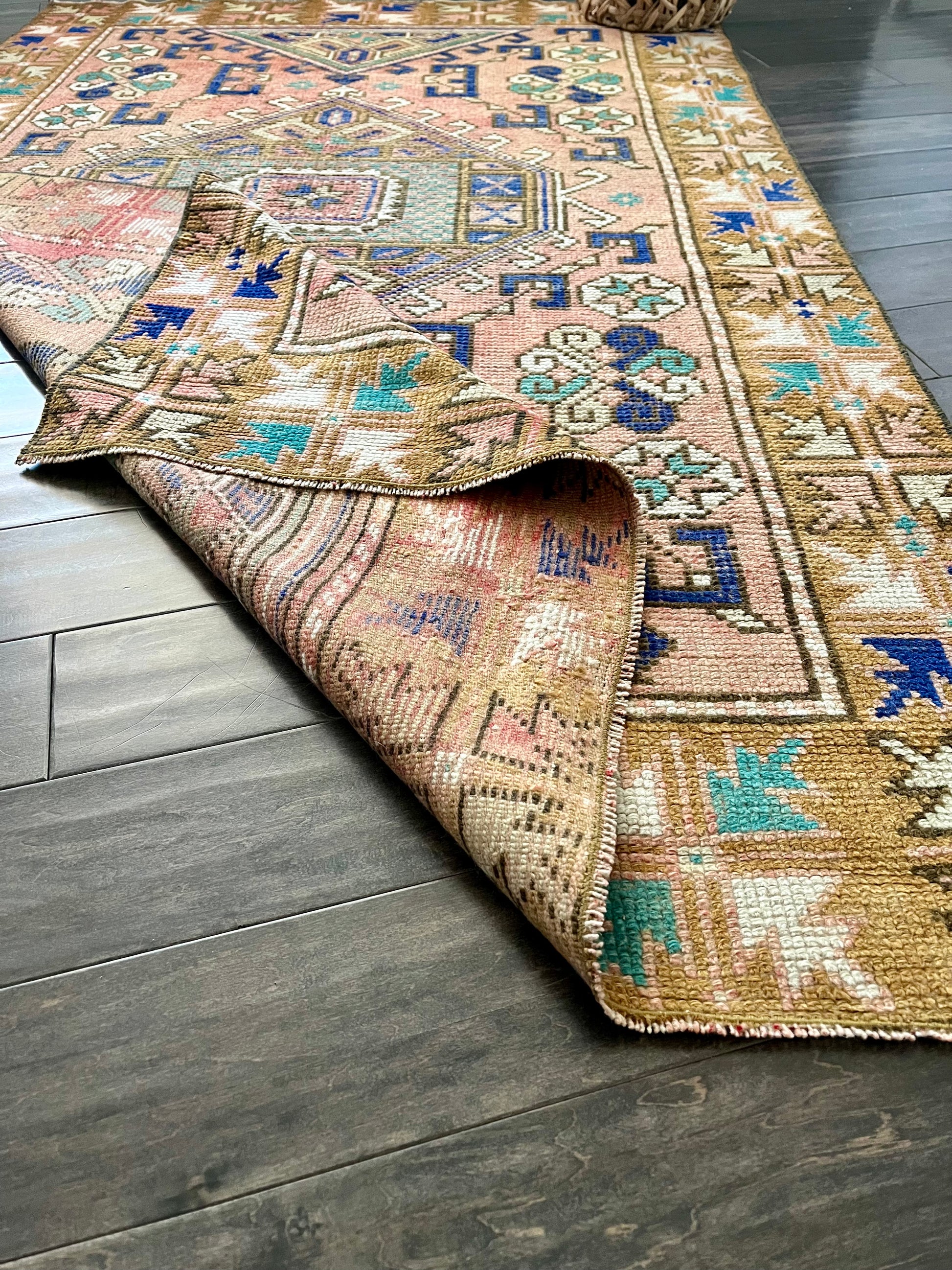 Note: Handwoven vintage rugs are all one-of-a-kind. Each will have imperfections due to their vintage nature, but that's what makes them so special & unique. If you have any questions on a rug, please reach out to me prior to purchasing - all sales final.