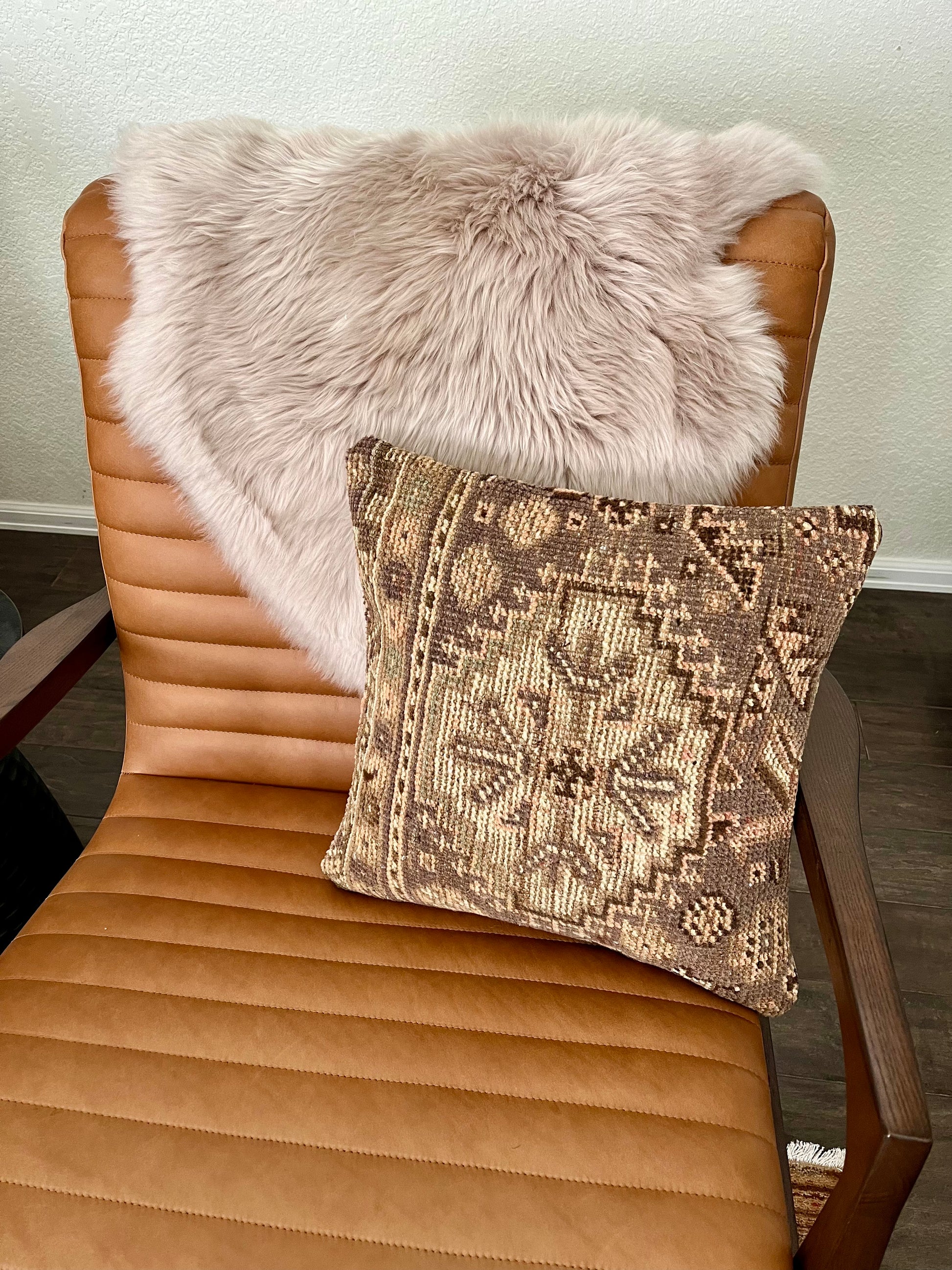 Note: Handwoven vintage rug pillows are all one-of-a-kind. Each will have imperfections due to their vintage nature, but that's what makes them so special & unique. If you have any questions, please reach out to me prior to purchasing - all sales final.