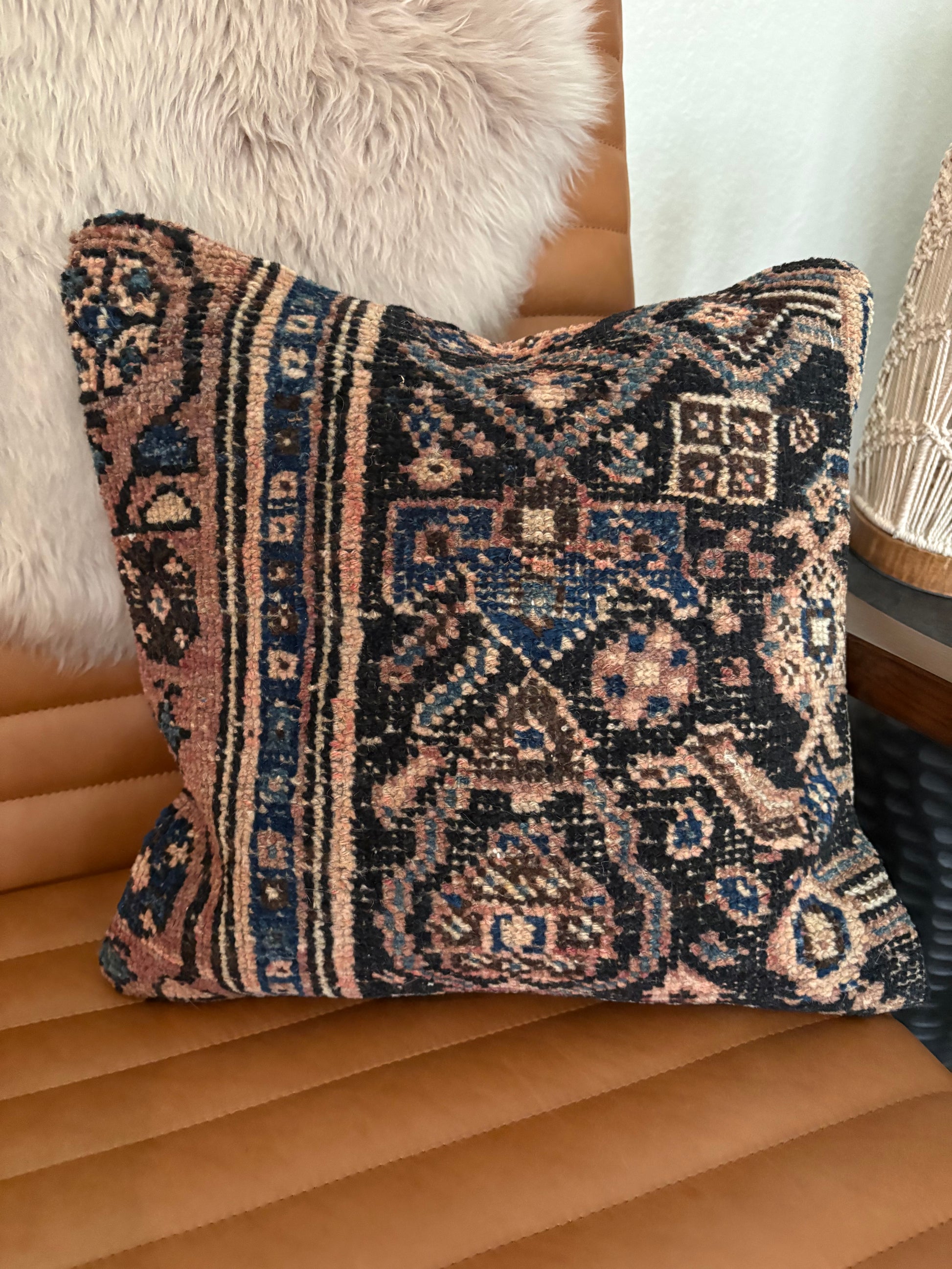 Note: Handwoven vintage rug pillows are all one-of-a-kind. Each will have imperfections due to their vintage nature, but that's what makes them so special & unique. If you have any questions, please reach out to me prior to purchasing - all sales final.