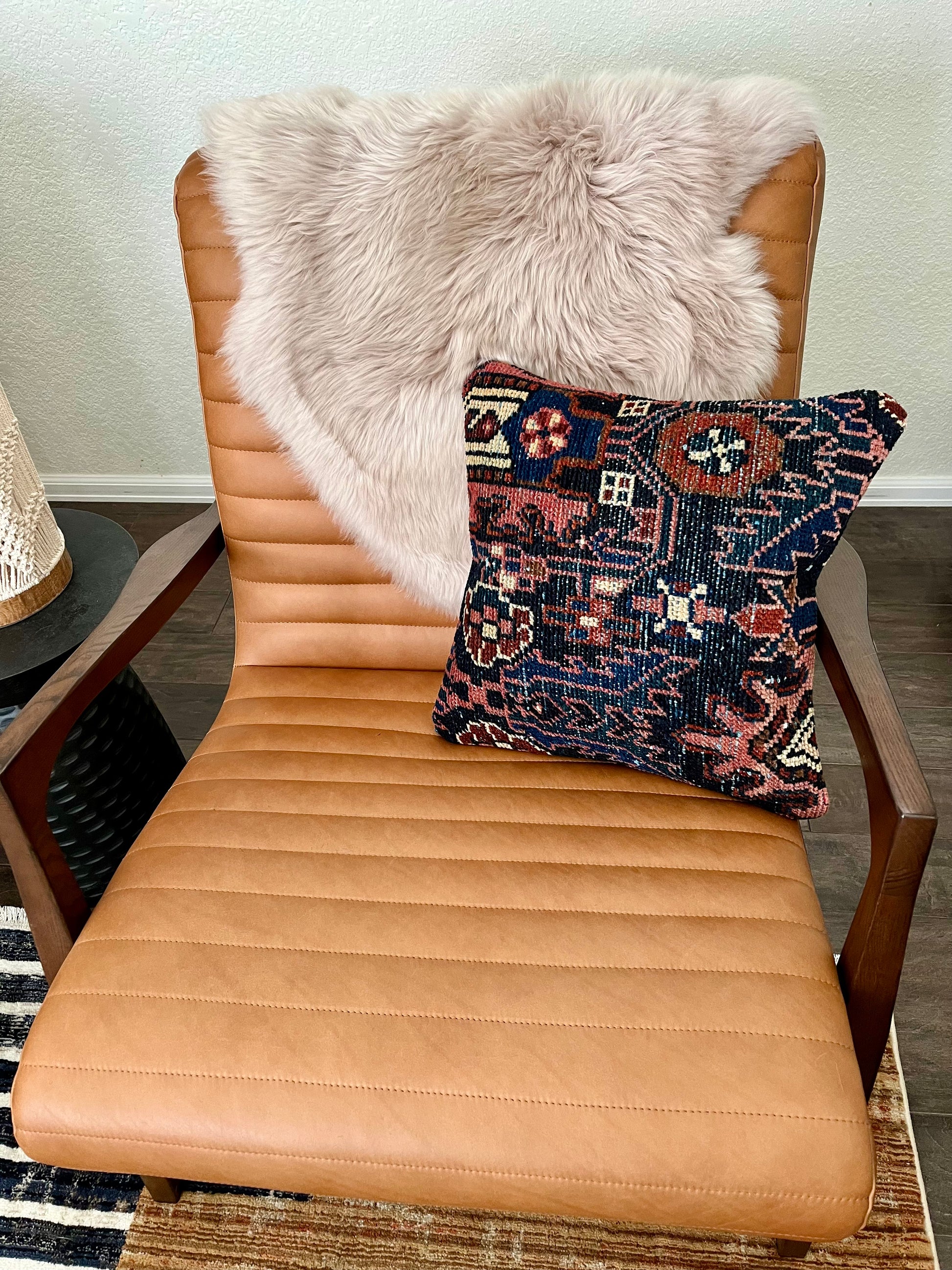 Note: Handwoven vintage rug pillows are all one-of-a-kind. Each will have imperfections due to their vintage nature, but that's what makes them so special & unique. If you have any questions, please reach out to me prior to purchasing - all sales final.