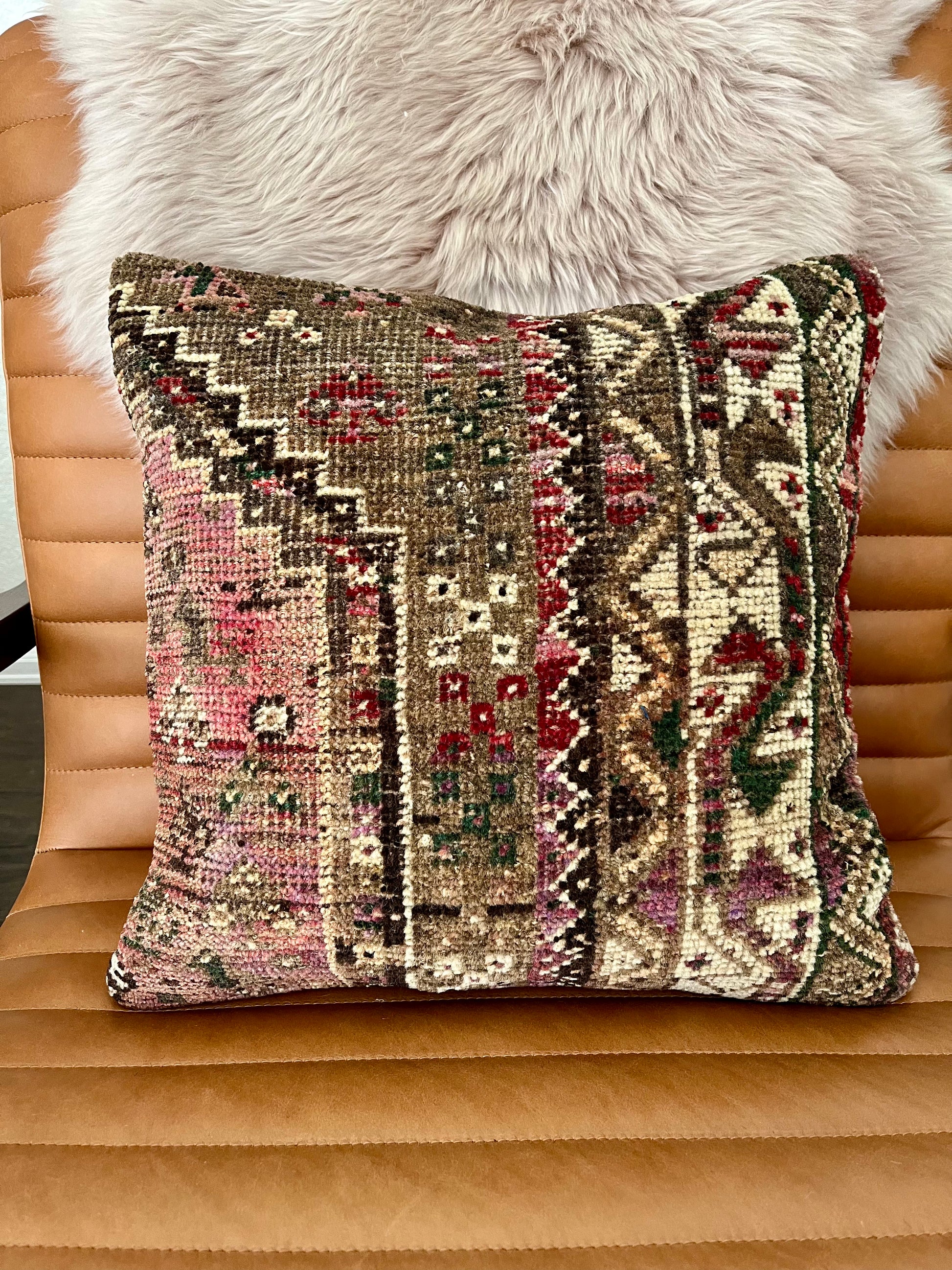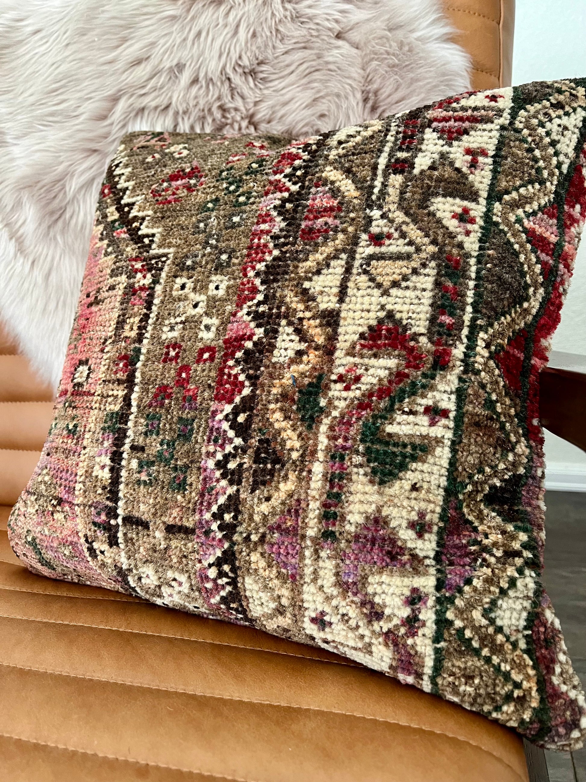 Note: Handwoven vintage rug pillows are all one-of-a-kind. Each will have imperfections due to their vintage nature, but that's what makes them so special & unique. If you have any questions, please reach out to me prior to purchasing - all sales final.